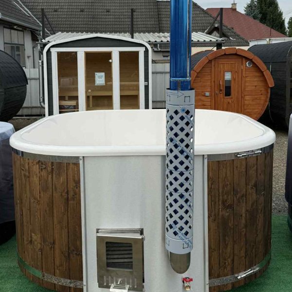 Palermo SÓZHATÓ négyszögletes 8 személyes üvegszálas dézsafürdő integrált kályhával mennyiség